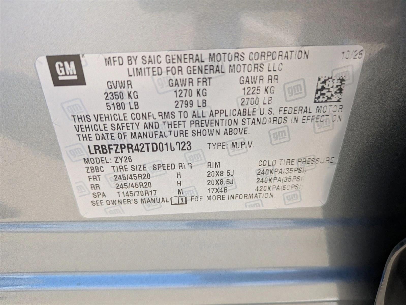 - Tires, P245/45R20 all-season