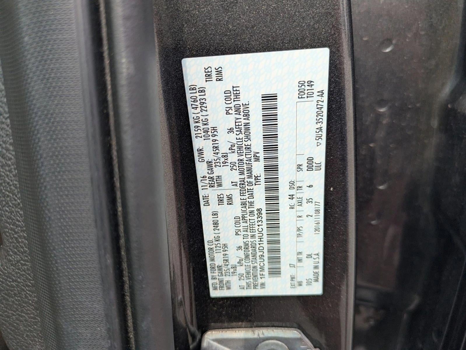 Looking for a clean, well-cared for 2017 Ford Escape? This is it. This Ford includes: PANORAMIC VISTA ROOF Panoramic Roof Generic Sun/Moonroof Sun/Moonroof Dual Moonroof WHEELS: 19 MACHINED ALUMINUM (DISCONTINUED) Tires - Front Performance Aluminum Wheels Tires - Rear Performance VOICE-ACTIVATED TOUCHSCREEN NAVIGATION SYSTEM Navigation System EQUIPMENT GROUP 301A Variable Speed Intermittent Wipers Lane Departure Warning Automatic Parking Lane Keeping Assist Heated Steering Wheel Intermittent Wipers Daytime Running Lights HID headlights Rain Sensing Wipers INTERIOR CARGO COVER Cargo Shade ENGINE: 1.5L ECOBOOST 4 Cylinder Engine Gasoline Fuel Turbocharged MEDIUM LIGHT STONE, HEATED LEATHER-TRIMMED BUCKETS Seat Memory Power Passenger Seat Power Driver Seat Heated Front Seat(s) Passenger Adjustable Lumbar Leather Seats Driver Adjustable Lumbar Pass-Through Rear Seat Bucket Seats FRONT LICENSE PLATE BRACKET MAGNETIC METALLIC TRANSMISSION: 6-SPEED AUTOMATIC W/SELECTSHIFT (STD) Transmission w/Dual Shift Mode A/T 6-Speed A/T *Note - For third party subscriptions or services, please contact the dealer for more information.* The Ford Escape is the benchmark all other SUVs strive to meet. With exceptional power, towing and handling, this SUV can handle anything thrown at it. Want to brave the road less traveled? You'll have the 4WD capabilities to do it with this vehicle. The Escape Titanium is well maintained and has just 100,373mi. This low amount of miles makes this vehicle incomparable to the competition. Find the quickest driving route in this Ford Escape Titanium using the installed navigation system. This nav system is one of the easiest to use and will help get you where you need to go quickly! Added comfort with contemporary style is the leather interior to heighten the quality and craftsmanship for the Ford Escape Titanium. More information about the 2017 Ford Escape: The 2017 Ford Escape is a sleek, rakish, modern design, yet it is surprisingly roomy inside. Also surprising is how well the Escape responds and handles -- as if it were a sport wagon. The Escape's turbocharged powertrains are standouts in this class, offering more power than you get elsewhere, plus excellent fuel economy. In terms of tech features, between the Sync 3 infotainment system, an active park assist system and active-safety features like BLIS, the Escape stands far apart from more plainly presented crossover wagons. Interesting features of this model are Stronger performance and better handling than other small affordable crossovers, excellent Sync 3 infotainment and connectivity, impressive maneuverability, excellent fuel economy, and spacious interior Over 43 Million Happy Customers have trusted us when buying or servicing their cars and trucks. That''s more than any other automotive retailer. Since AutoNation is America''s Largest Automotive Retailer, we hold ourselves to higher standards. That''s why we offer processes and guarantees you won''t find anywhere else.