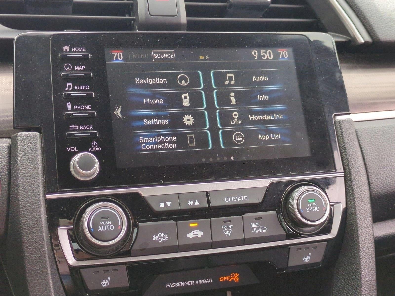 - Radio: 450-Watt AM/FM/HD/SiriusXM Audio System -inc: 9 speakers, subwoofer, 7-inch display w/high-resolution electrostatic touch-screen, knob and hard keys for primary controls and customizable feature settings, Bluetooth® HandsFreeLink, Bluetooth® streaming audio, radio data system (RDS), speed-sensitive volume compensation (SVC), 1.0-amp USB audio interface port in center console, Apple CarPlay integration, Android Auto integration, HondaLink, SMS text message function, 1.5-amp USB smartphone/audio interface in lower front console, Honda Satellite-Linked Navigation System w/voice recognition and Honda HD digital traffic, fin-type roof-mounted antenna and illuminated steering wheel-mounted audio and navigation controls