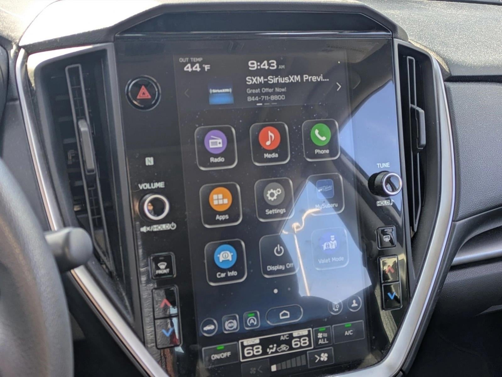 - Radio: Subaru STARLINK 11.6" Multimedia Plus Sys -inc: valet mode, AM/FM stereo, HD Radio, multi-touch gesture high resolution display screen, voice activated controls, Bluetooth® audio streaming and hands-free phone connectivity, Bluetooth® hands-free SMS text messaging connectivity, iPod control capability, rear-vision camera display, SiriusXM All Access radio (4 months free trial/subscription required after), SiriusXM Travel Link (4 months free trial/subscription required after), smartphone integration: Android Auto, Apple CarPlay, STARLINK cloud applications, 6 speakers, 3.5mm auxiliary input jack, illuminated/dual USB A and C input charge ports, roof mounted antenna and audio/satellite connected services